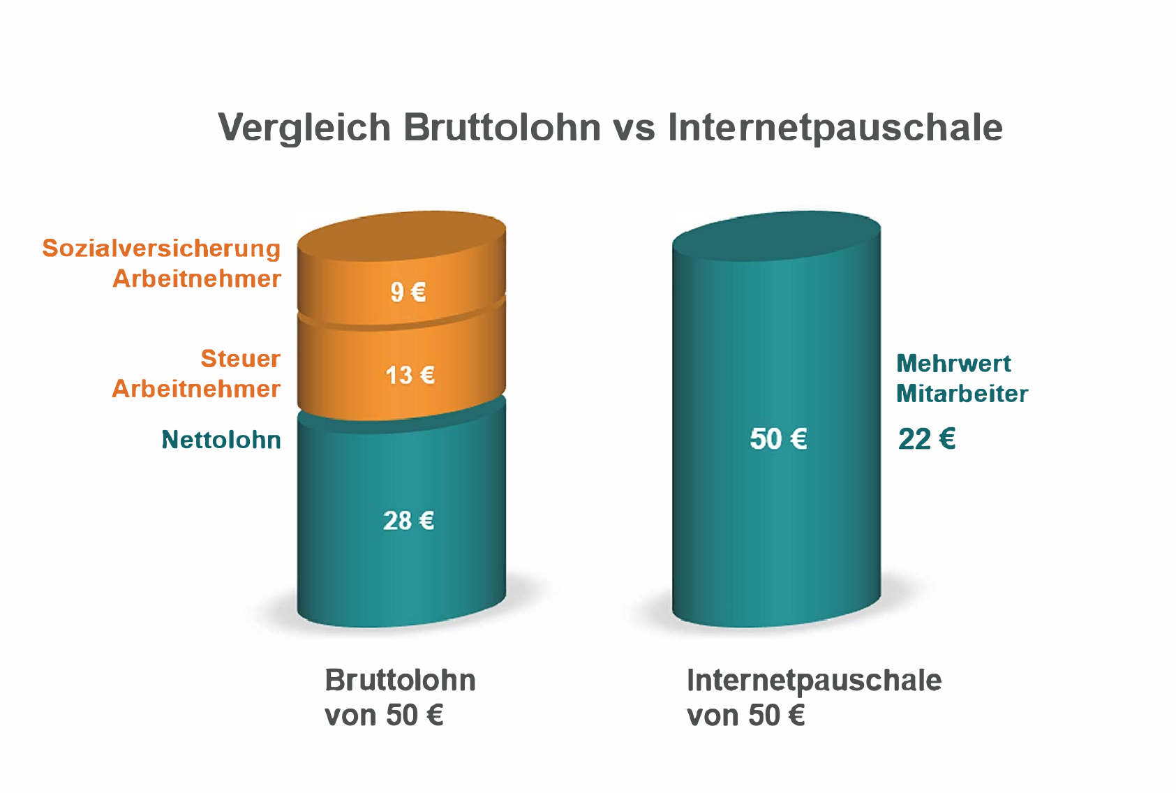 Pauschalsteuer trägt Arbeitgeber, keine Sozialversicherung. Die Kosten, die der Arbeitgeber Ihnen für die Internetpauschale erstattet, können Sie NICHT MEHR in Ihrer privaten Steuererklärung geltend machen.